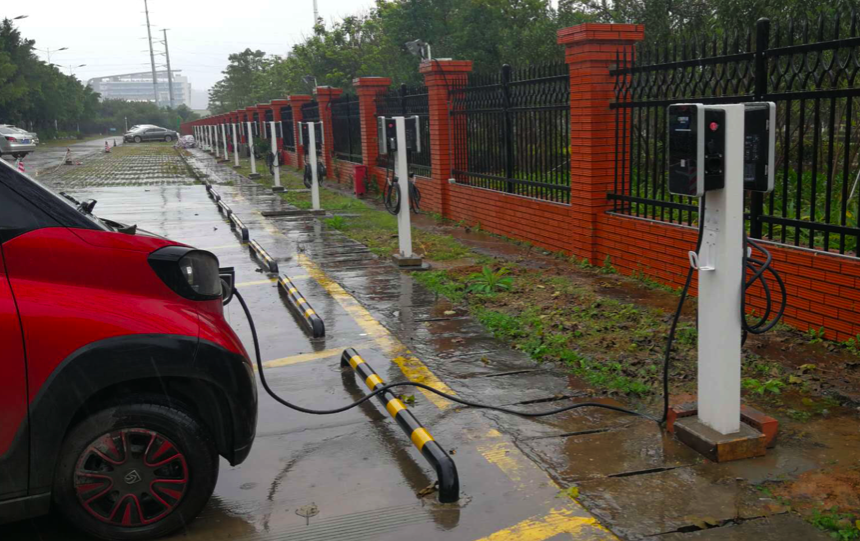 Auto in ricarica sotto la pioggia (Credit: Vaielettrico)